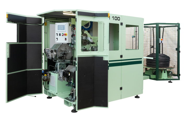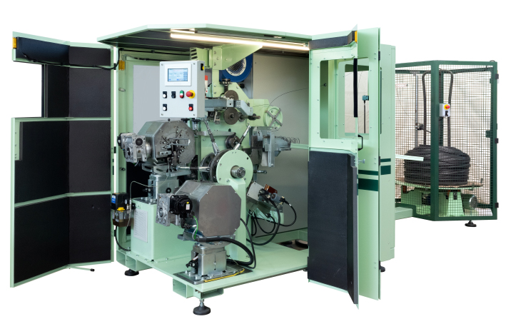 Se puede utilizar un nuevo dispositivo de guía de muelles controlado electrónicamente, especialmente para muelles altos. La máquina es muy fácil de operar y la mayoría de las piezas de repuesto son compatibles con estándar.