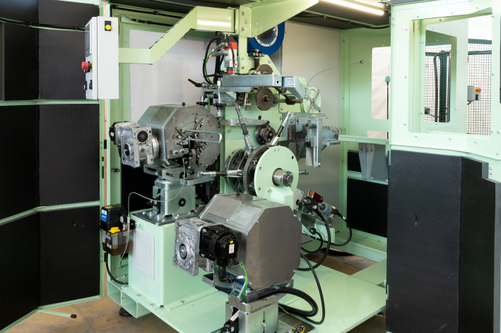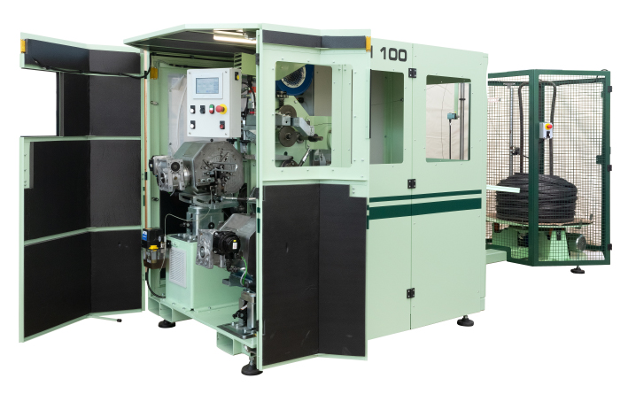 Los dos extremos del alambre se anudan y el muelle acabado se somete a un tratamiento térmico. La forma de los muelles puede ajustarse según sea necesario. La alimentación electrónica del alambre garantiza longitudes iguales para una producción constante.